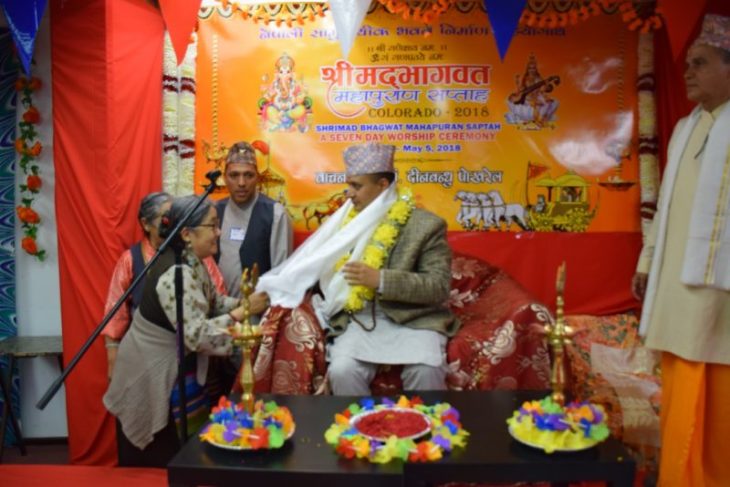 नेपाली घरको संयोजन तथा कोलोराडोमा कृयाशिल सबै संघ संस्था र समाजसेवीहरुको आयोजनामा भोली अप्रिल २९ देखी मे ५ तारिक सम्म बाचन प्रविण गुरु दिनबन्धु पोखरेलको मुखारबिन्दबाट बाचन हुने श्रीमद्भागवत् महापुराणको आज पानसमा बत्तीबालेर स्थानीय संघ संस्थाका अध्यक्षहरुले सामुहिक उद्धाटन गरेका हुन् ।