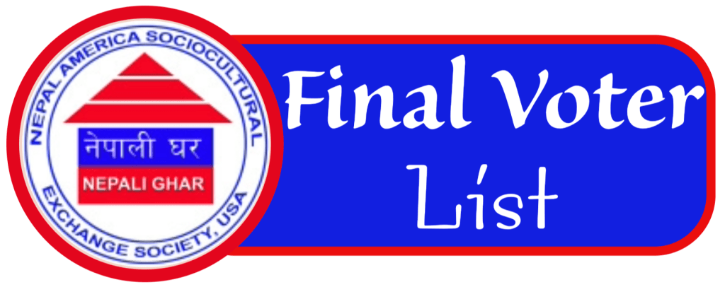 Nepal America Sociocultural Exchange Society Inc. USA (Nepali Ghar) is holding a general election process starting from 20th April 2024 for Executive Committee officers and Board of Directors for the year 2023-2025.